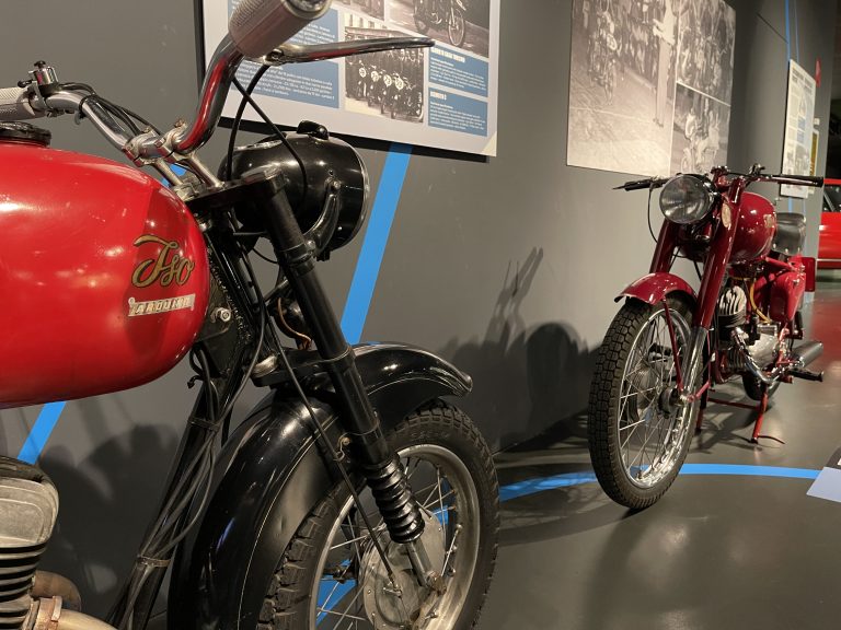 Si parte dalla Isothermos, realtà rilevata da Renzo Rivolta e dedicata, tra gli anni Trenta e Quaranta, alla produzione di refrigeratori e riscaldatori, passando successivamente alla produzione di scooter e moto, rappresentati in mostra dal grande successo dell’Iso 125 Isoscooter (1949) e dell’Isomoto 125 (1952). A coronare il duetto anche una Isomoto con sidecar prodotta nel 1954 dalla consociata “Borgward Iso Española”.
